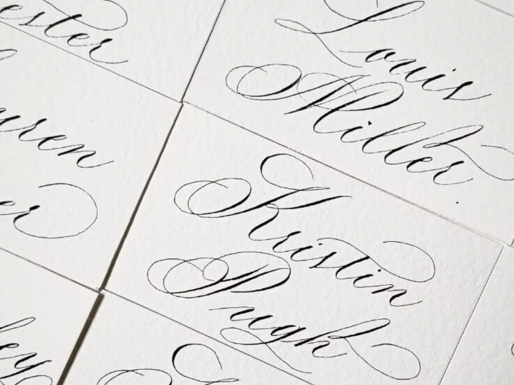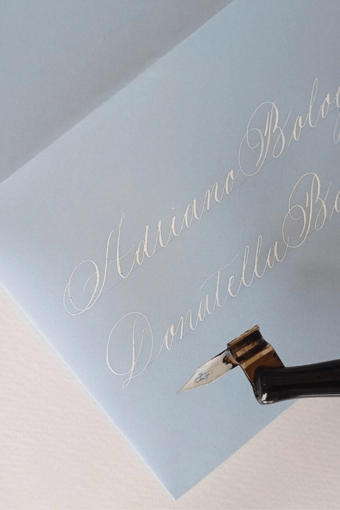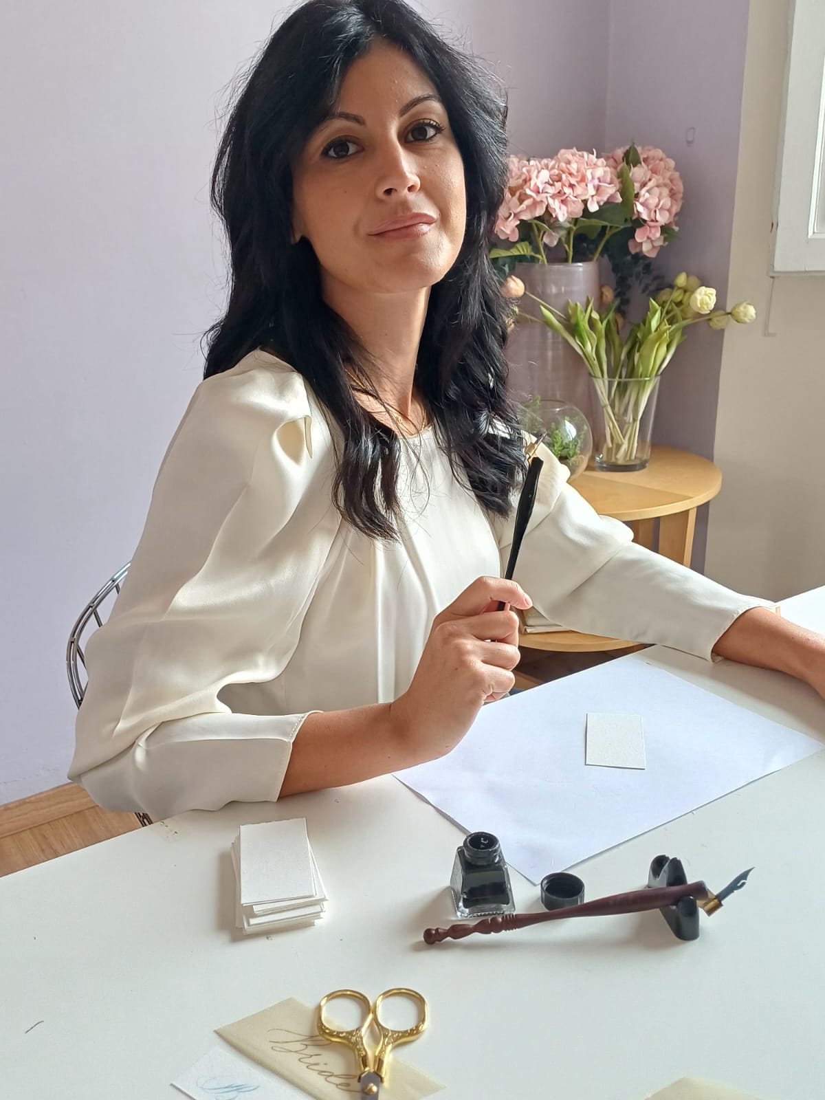 Vivo e lavoro a Firenze, dove progetto wedding stationery e dettagli calligrafici realizzati interamente nel mio studio: inviti, suite coordinate, menù, segnaposto e personalizzazioni dal vivo per boutique e brand.